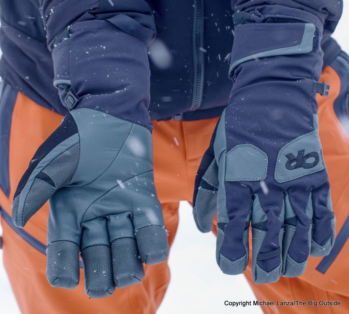 The waterproof-breathable Gore-Tex insert in the outer/shell glove kept my hands dry when sticking them into deep snow while digging a snow pit for avalanche assessment. That protection extends to getting caught in rain in shifting weather or lower elevations.